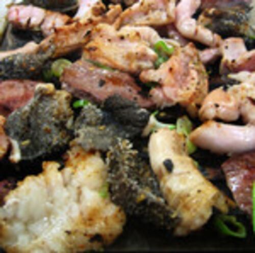 鶏モツを酒と醤油と砂糖で煮る。 ことことことことことことこと。 小一時間も煮ればいいかな。 焼き葱と合わせて盛りつけ。