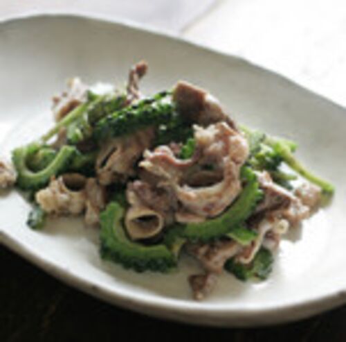 豚ナンコツとゴーヤを炒めて食べる。 コリコリコリコリコリコリコリコリ。 凄い歯ごたえ。