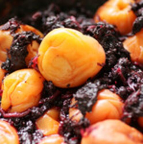 紫蘇の葉を塩で揉んで 灰汁を出してから 梅干しの容器に入れる。 黄金色の梅酢が鮮やかな朱に染まる。